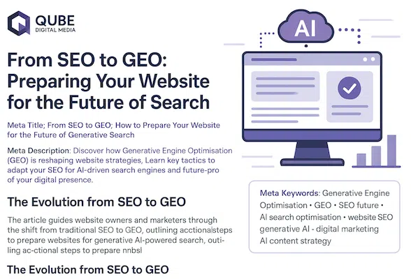 Brief Overview: This article guides website owners and marketers through the shift from traditional SEO to GEO, outlining actionable steps to prepare websites for generative AI-powered search engines. It explains how the changing search landscape requires new content structures, technical adaptations, and ongoing optimisation. The Evolution from SEO to GEO Search engine optimisation (SEO) has...