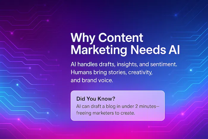 Why Content Marketing Needs AI Content marketing has always been about one thing: telling stories that connect with audiences. But in an era where businesses need to publish blogs, videos, emails, and social updates at scale, keeping up is a challenge. This is where Artificial Intelligence steps in, not to replace creativity, but to amplify it....